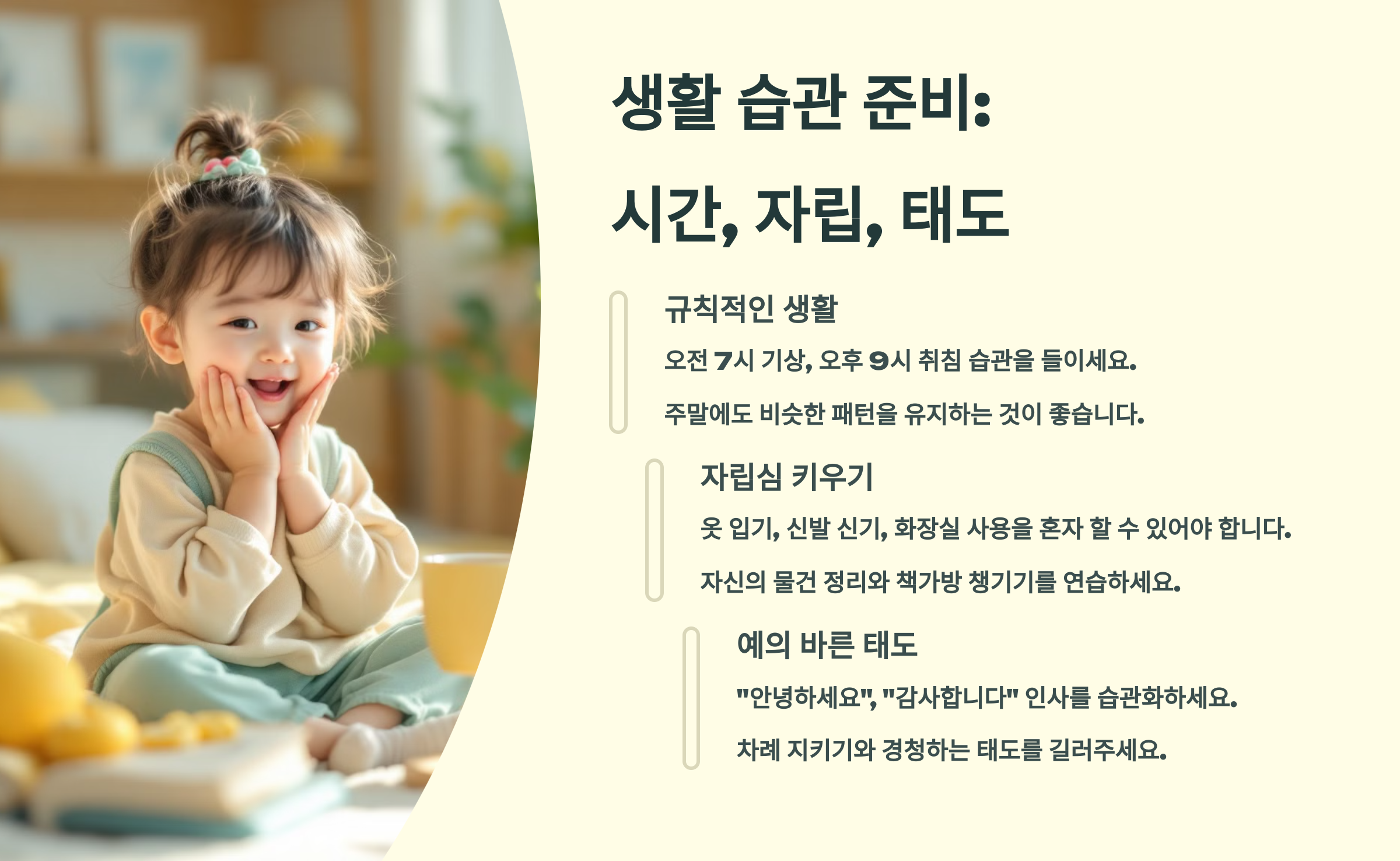 ⏰ 생활 습관 준비: 시간, 자립, 태도