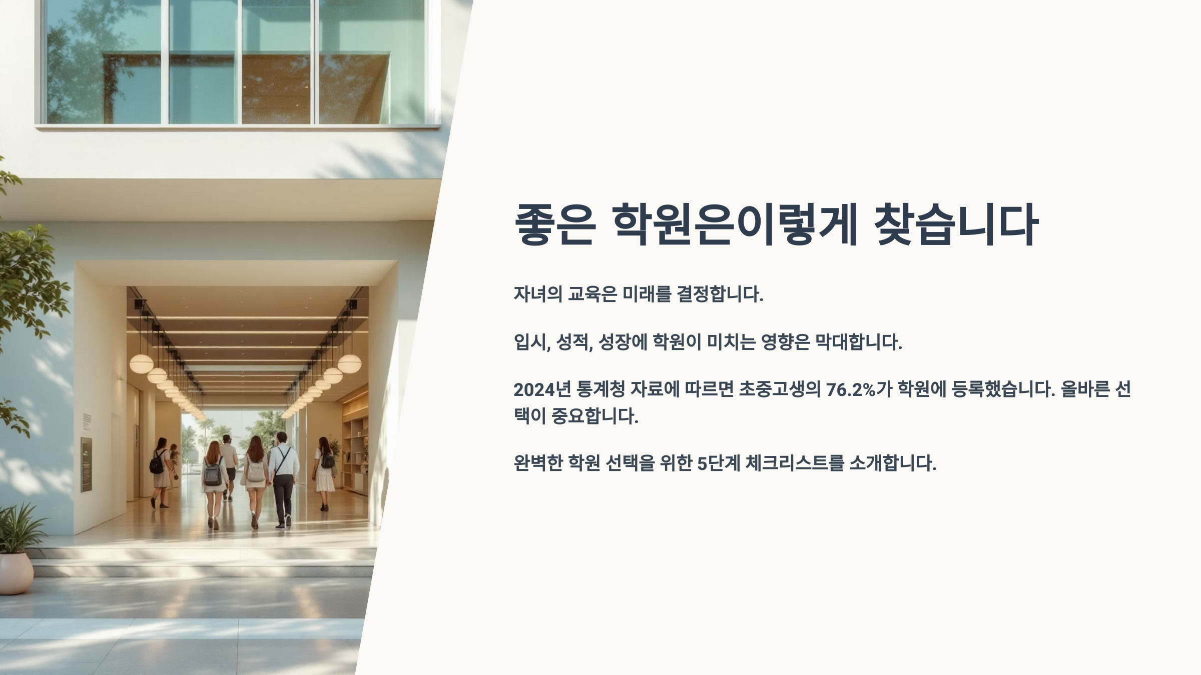 하지만 걱정 마세요! 학원을 고를 땐 단순히 “잘 가르친다”는 말보다 아이에게 맞는 5가지 기준을 순서대로 체크하는 게 훨씬 중요하답니다. 그 기준만 잘 기억하면 실패 확률은 훅 떨어져요! 📉