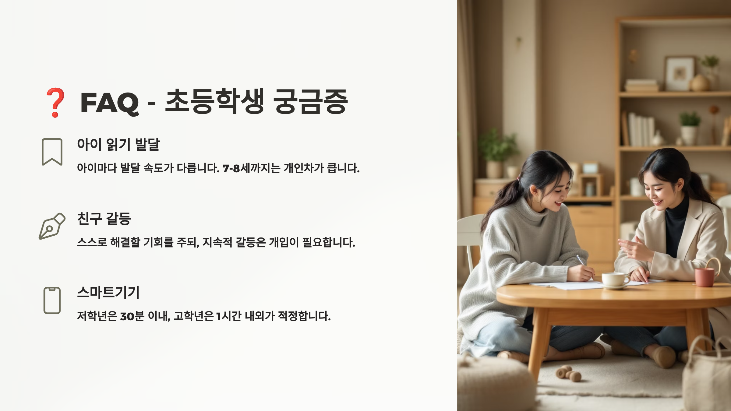 💬 내가 생각했을 때, 아이와 부모가 서로를 가장 잘 배우는 시기가 바로 이 초등 6년인 것 같아요. 아이는 삶을 배우고, 부모는 사랑하는 법을 배우죠. 그래서 함께 자라는 시간이에요.