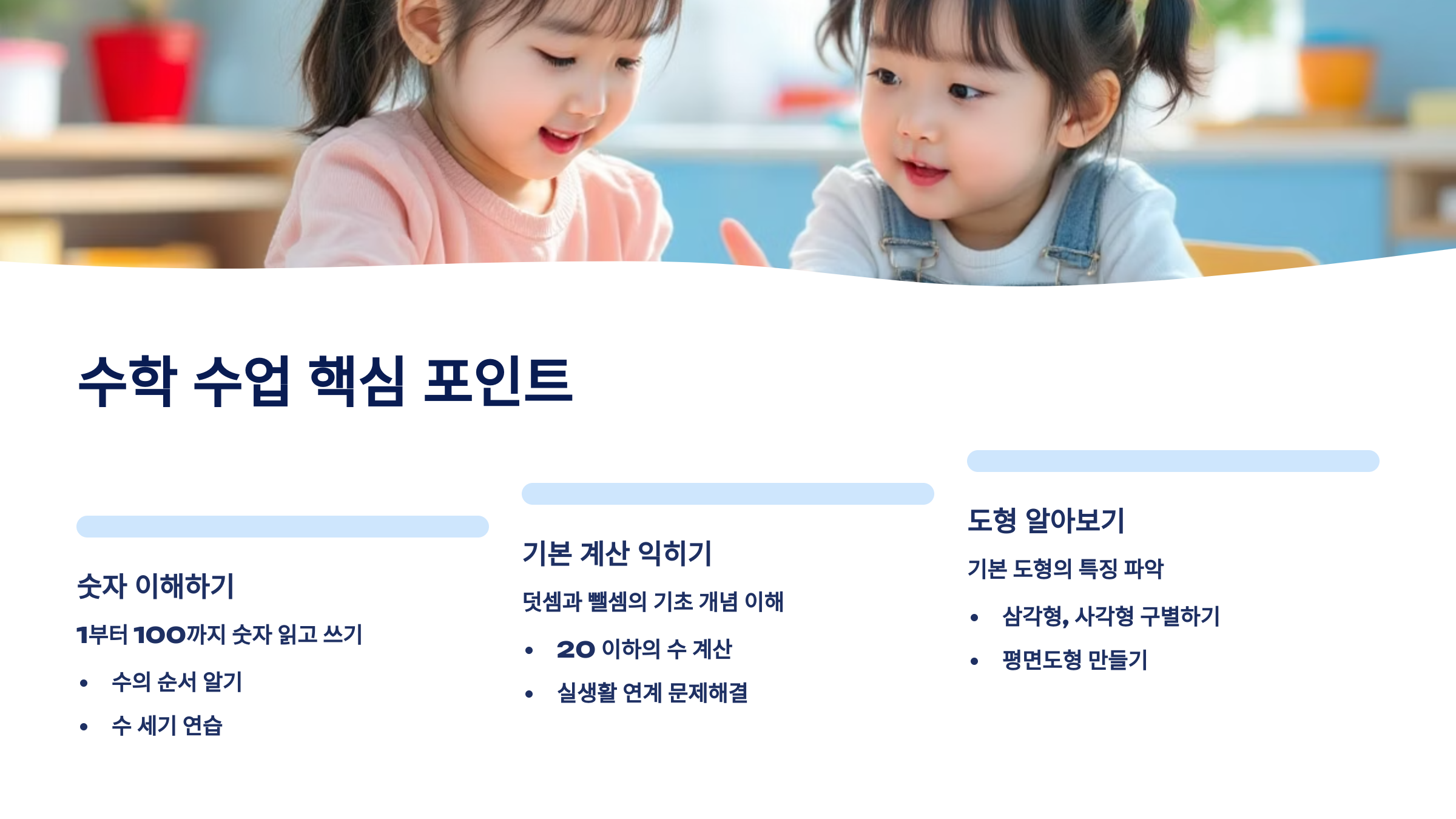 초1 수학 수업은 개념 이해 + 생활 적용이 중심이에요. 아이들이 수학을 두려워하지 않고, 숫자를 편하게 받아들이도록 만드는 데 목적이 있어요. 😊