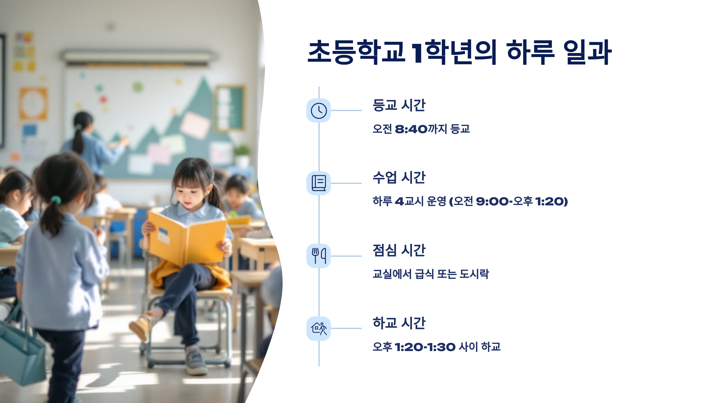 초등학교 1학년은 정규수업 4교시 또는 5교시로 시작돼요. 처음 학교생활을 시작하는 아이들이기 때문에 하루 일과가 짧고 안정적인 구조로 구성되어 있답니다. 😊