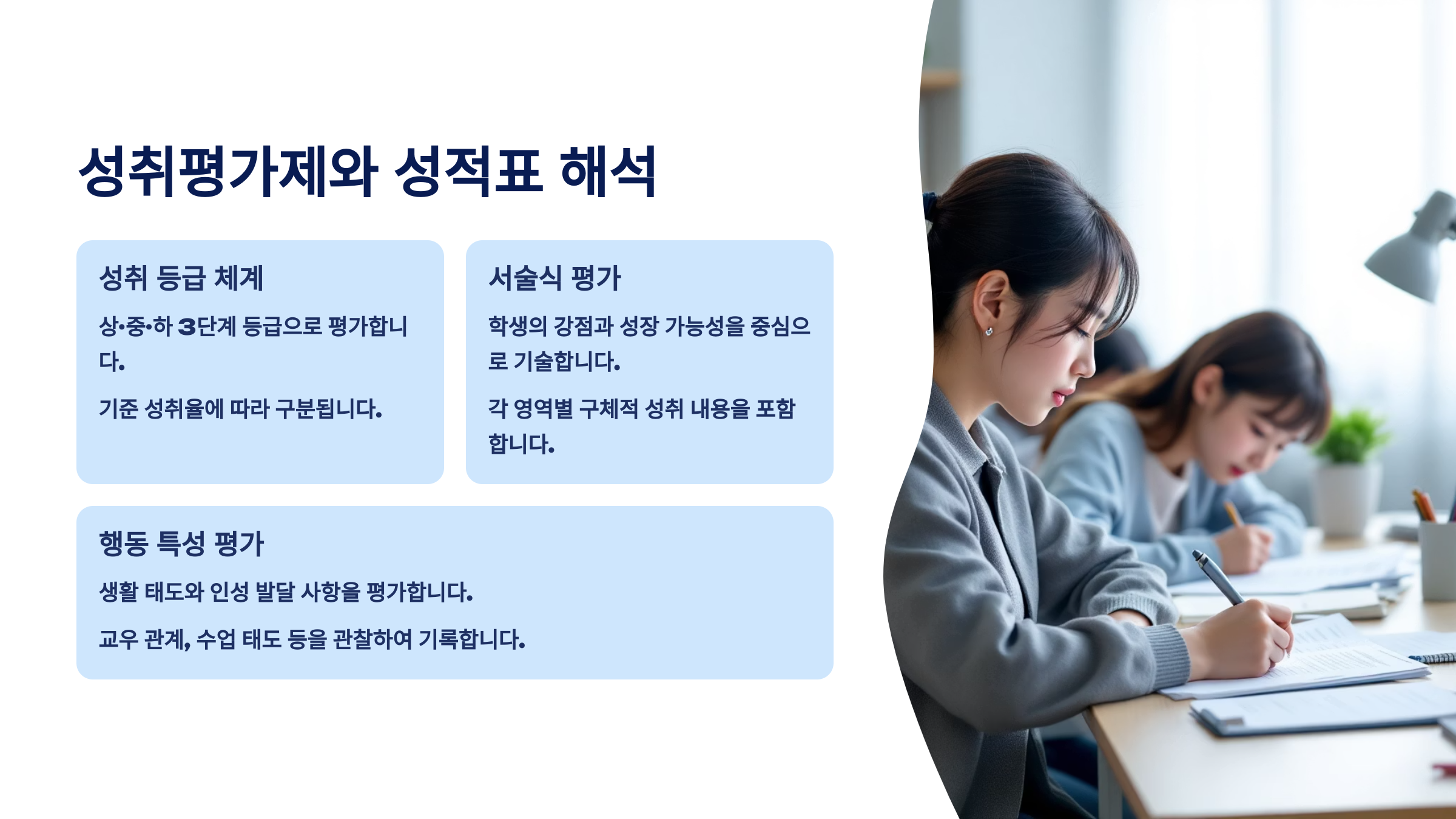 📘 성취평가제는 아이에게 부담을 줄이기 위한 제도예요. ‘누가 더 잘했는가’보다 ‘얼마나 성장했는가’를 보는 평가니까 부모님도 점수보다 과정을 함께 응원해주는 자세가 중요해요! 💕