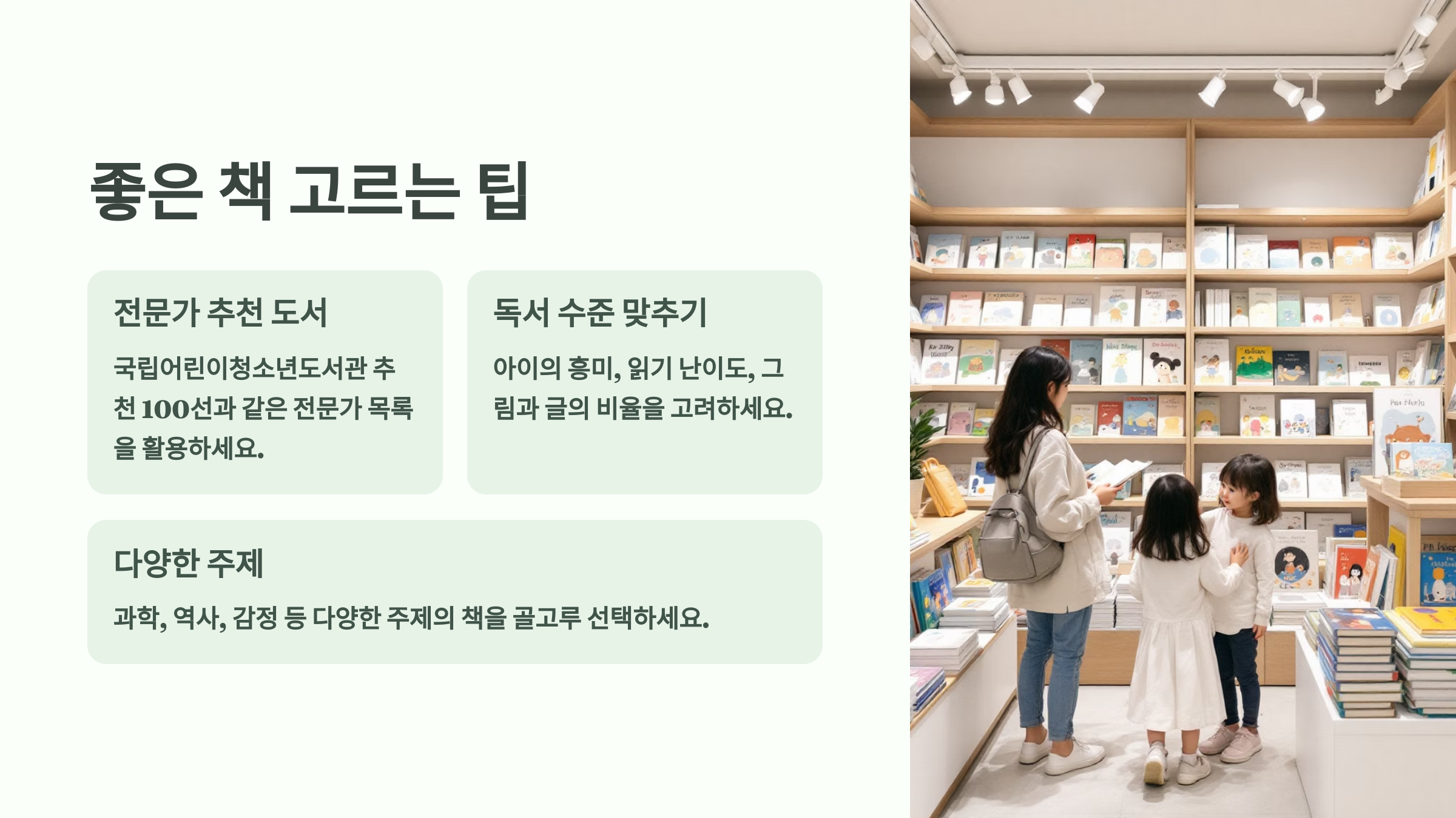 독서 습관을 잡기 위해서는 아이에게 딱 맞는 책을 고르는 게 정말 중요해요! 📚 좋은 책은 아이의 흥미를 자극하고, 책 읽기를 즐거운 경험으로 만들어준답니다. 그럼 구체적으로 어떤 기준으로 책을 고르면 좋은지 함께 알아볼게요! ✨