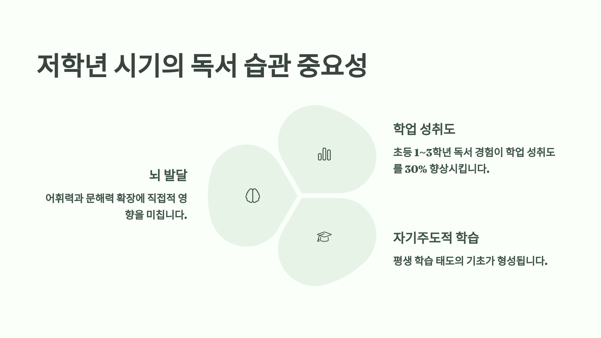 초등 저학년 시기는 독서 습관을 잡기에 정말 중요한 골든타임이에요. 아이의 뇌가 빠르게 발달하고, 언어 능력과 사고력이 폭발적으로 성장하는 시기이기 때문이죠. 🌱 이때 자연스럽게 책과 친해진 아이는 이후 학습 능력뿐만 아니라 사회성, 창의성까지 크게 발달할 수 있어요. 그래서 저학년 독서는 그 어떤 과목보다도 우선순위로 생각해야 해요! 🎯