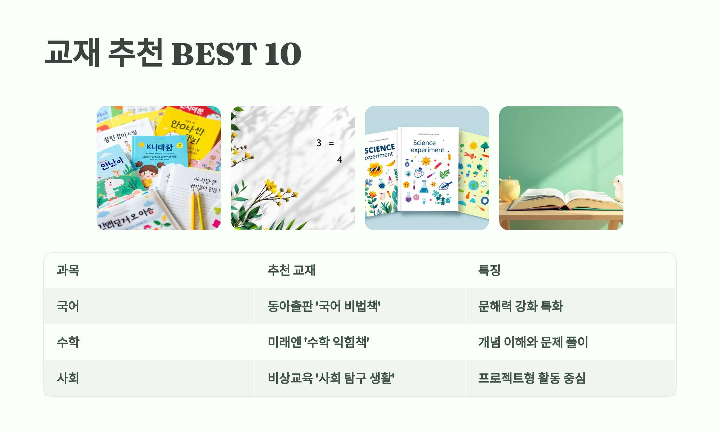 📚 다음은 실제로 도움이 되는 교재 추천 BEST 10으로 넘어가자! 2025년 학부모들이 가장 많이 찾는 교재들만 모아봤어 😊